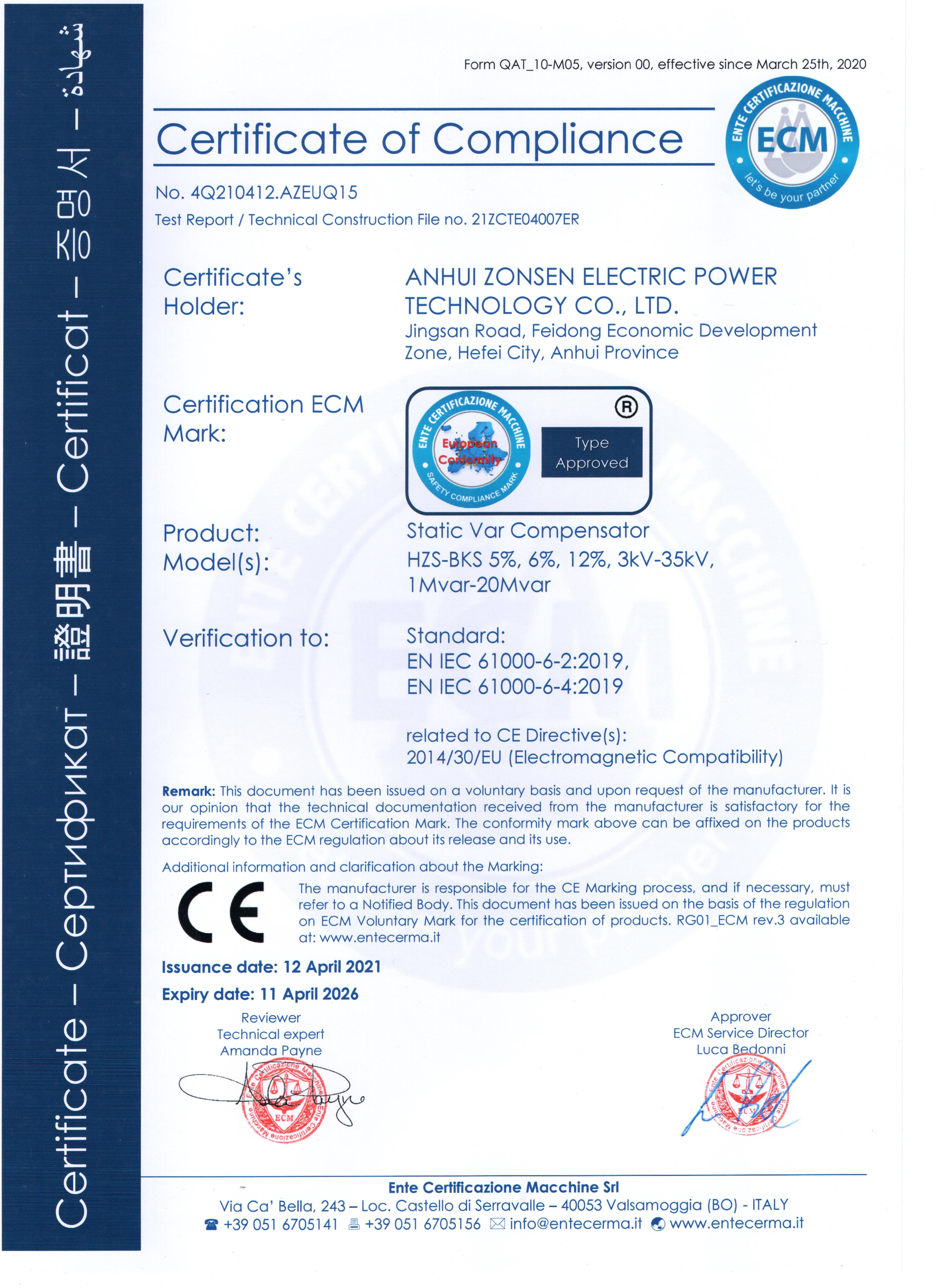 歐盟CE認(rèn)證(高壓無功補(bǔ)償裝置)